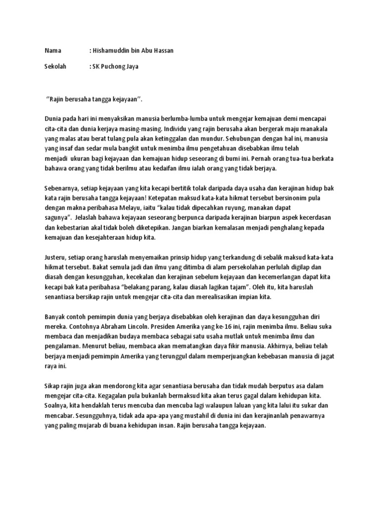 Rajin Dan Usaha Tangga Kejayaan Pdf