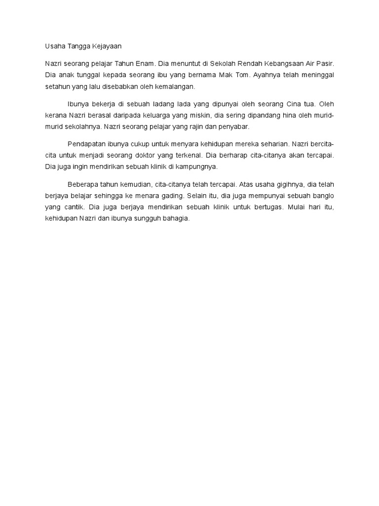 Karangan dialog usaha tangga kejayaan memerui. Usaha tangga kejayaan kata ibunya dengan nada teruja. Reviu darjah 4 karangan by azry karim.